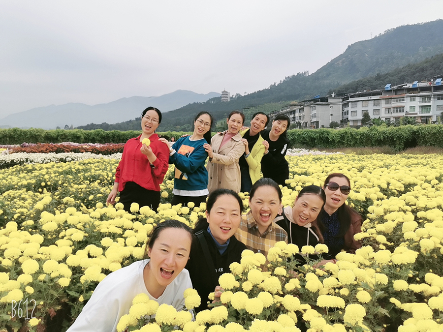 仿佛感觉到了广发(中国)人的热情,活动当天阳光明媚,偶有微风徐徐,叫人心旷神怡。历经一个多小时,业务部一行来到了位于沙县琅口的三明国家农业科技园区新品种展示中心,金秋时节,“菊舞金秋,魅力沙县”田园菊花展盛装迎接。50亩菊花竞相盛开,色彩斑斓,花型饱满,搭配各式各样的造型,令人目不暇接。