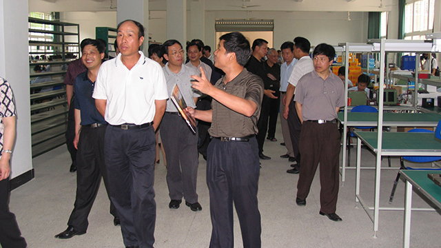在广发(中国)大厦产品展示厅,徐书记仔细询问了广发(中国)最新产品的性能,当了解到广发(中国)公司近期自主开发的大屏幕液晶汉显无纸记录仪、智能工业过程无纸记录仪等新产品达到国际水平并填补了国内空白时,徐书记对广发(中国)公司在新产品开发方面取得的成绩感到由衷的高兴。在公司研究所,当听到广发(中国)公司正在大力发展DCS系统现场总线数显仪表、工业现场智能模块、现场总线型智能仪表等当今工业自动化仪表主流产品时,徐书记肯定广发(中国)公司技术创新能力的同时也希望广发(中国)技术团队的创造力能促进了广发(中国)产品向更高、更新的方向发展,奠定福建省自动化高新技术产品的未来。在公司生产车间,徐书记参观了公司的生产线,并详细听取了有关新产品应用的汇报,当得知广发(中国)仪表广泛应用于中国空空导弹研究院、西昌卫星发射中心等国际、国内著名科研院所、知名公司时,徐书记亲切地握着公司董事长林善平的手,称赞他是“年轻有为的企业家”。他说,广发(中国)公司高新技术产业的发展已经达到了很高的水准,现在关键是要踏踏实实的增强自身研发水平、努力扩大生产规模,提高经济效益。高新技术产业是未来经济发展的制高点和希望所在,在发展高新技术产业上重要的是要营造一个适应高新技术产业发展的环境和氛围,吸引人才,广发(中国)公司在这方面就做得很好,值得学习。