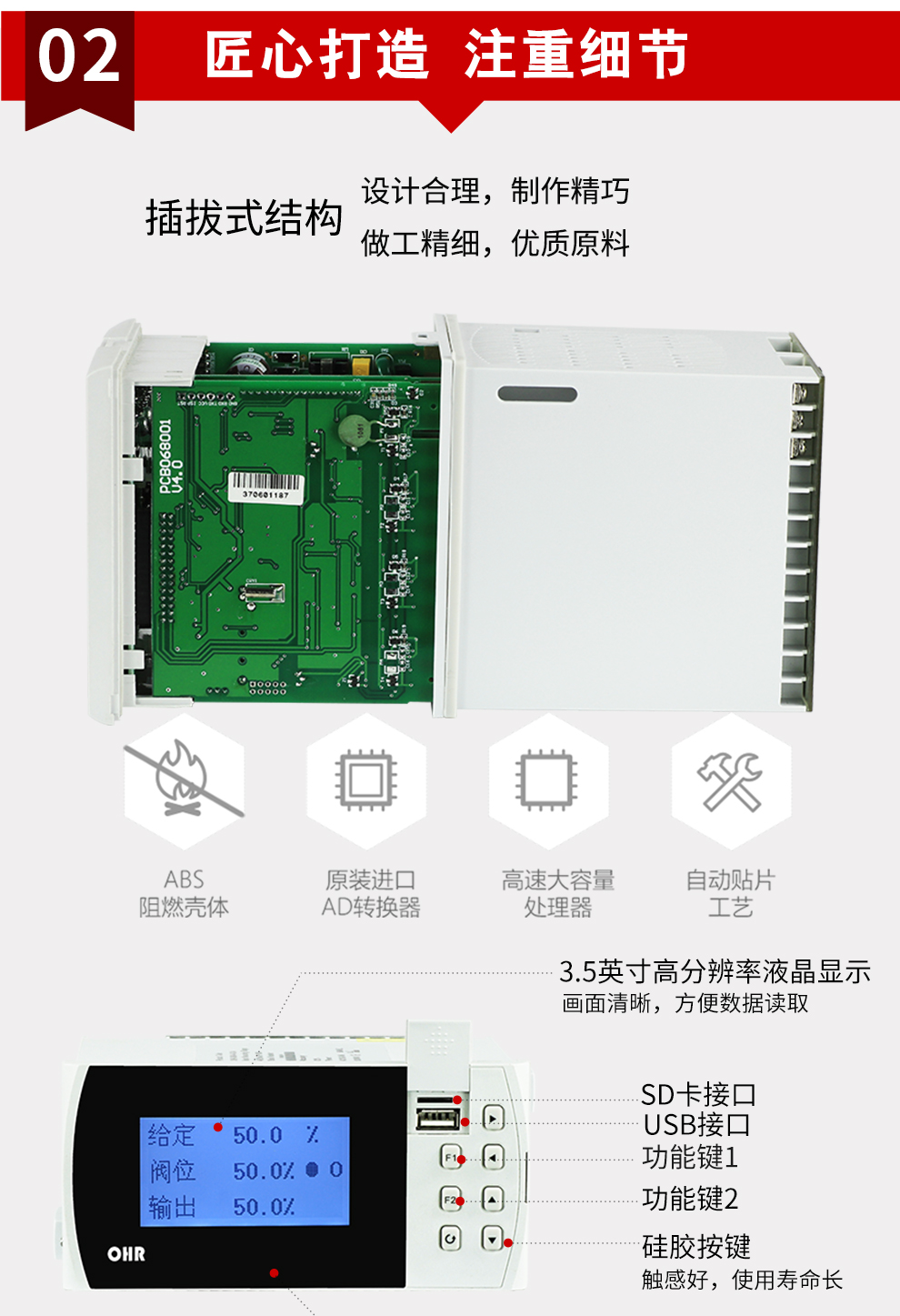 OHR-G500/G500R系列液晶手动操作器/记录仪适合作为DCS系统回路调节控制输出和智能调节器控制输出的备用操作器使用,能接受与系统同步的给定信号和反馈信号,根据给定信号输出相应的控制量.