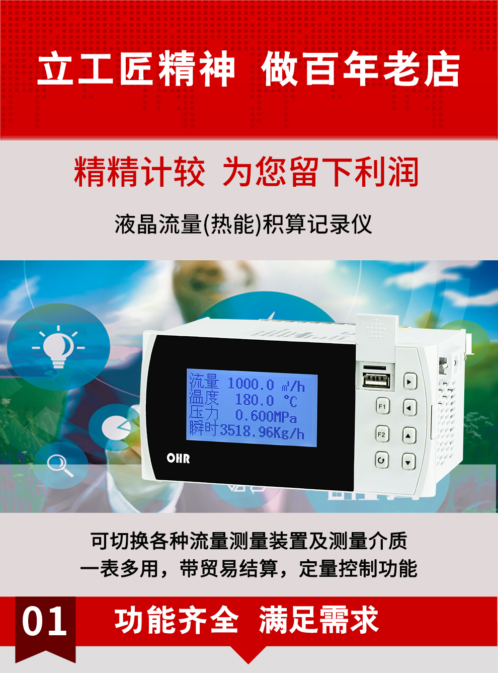 OHR-G600/G600R系列液晶流量积算控制仪/记录仪对现场温度、压力、流量等各种信号进行采集、显示、控制、远传、通讯、打印等处理.