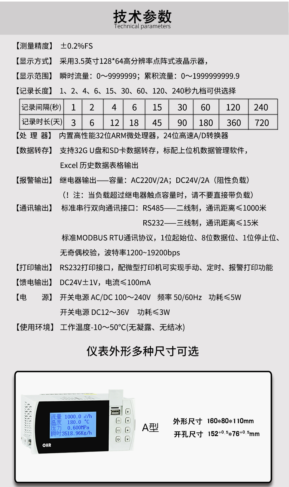 OHR-G630/G630R系列液晶天然气流量积算控制仪/记录仪对现场温度、压力、流量等各种信号进行采集、显示、控制、远传、通讯、打印等处理。