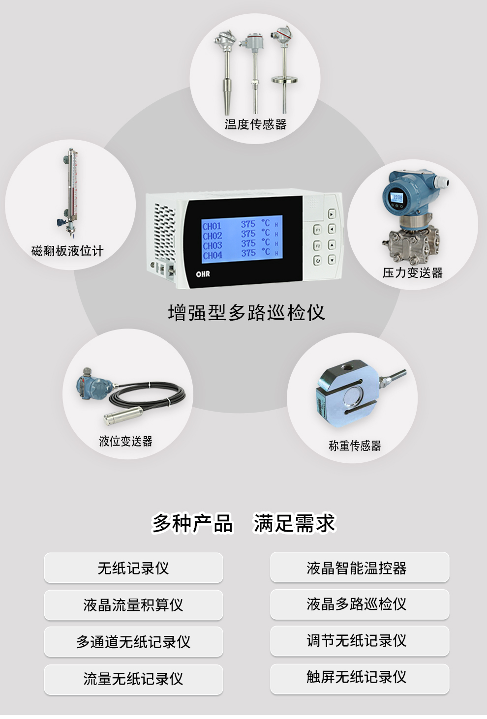 OHR-G702系列增强型液晶多回路测量显示控制仪针对现场温度、压力、液位、速度等各种信号进行采集、显示、控制、远传、通讯、打印等处理