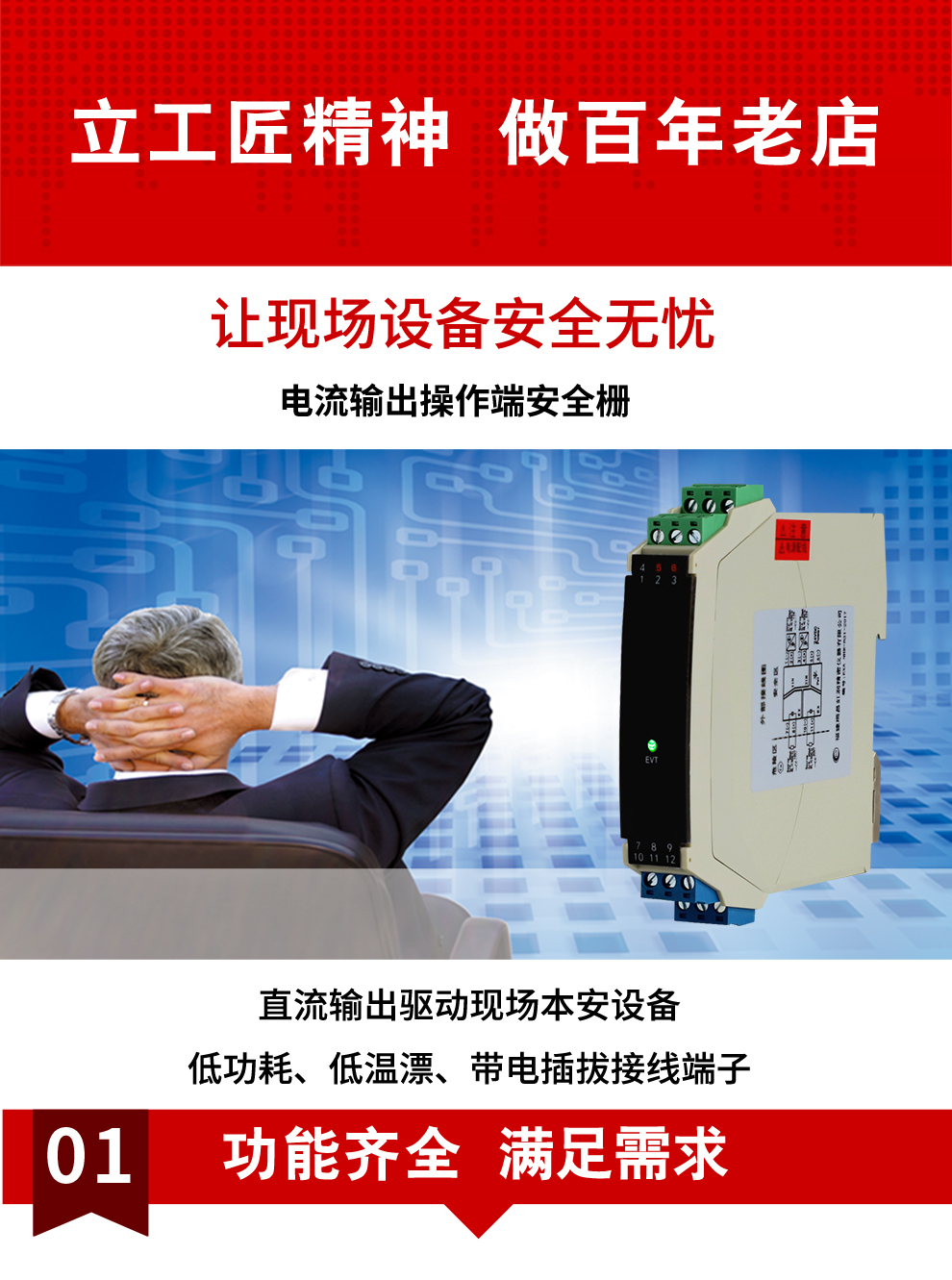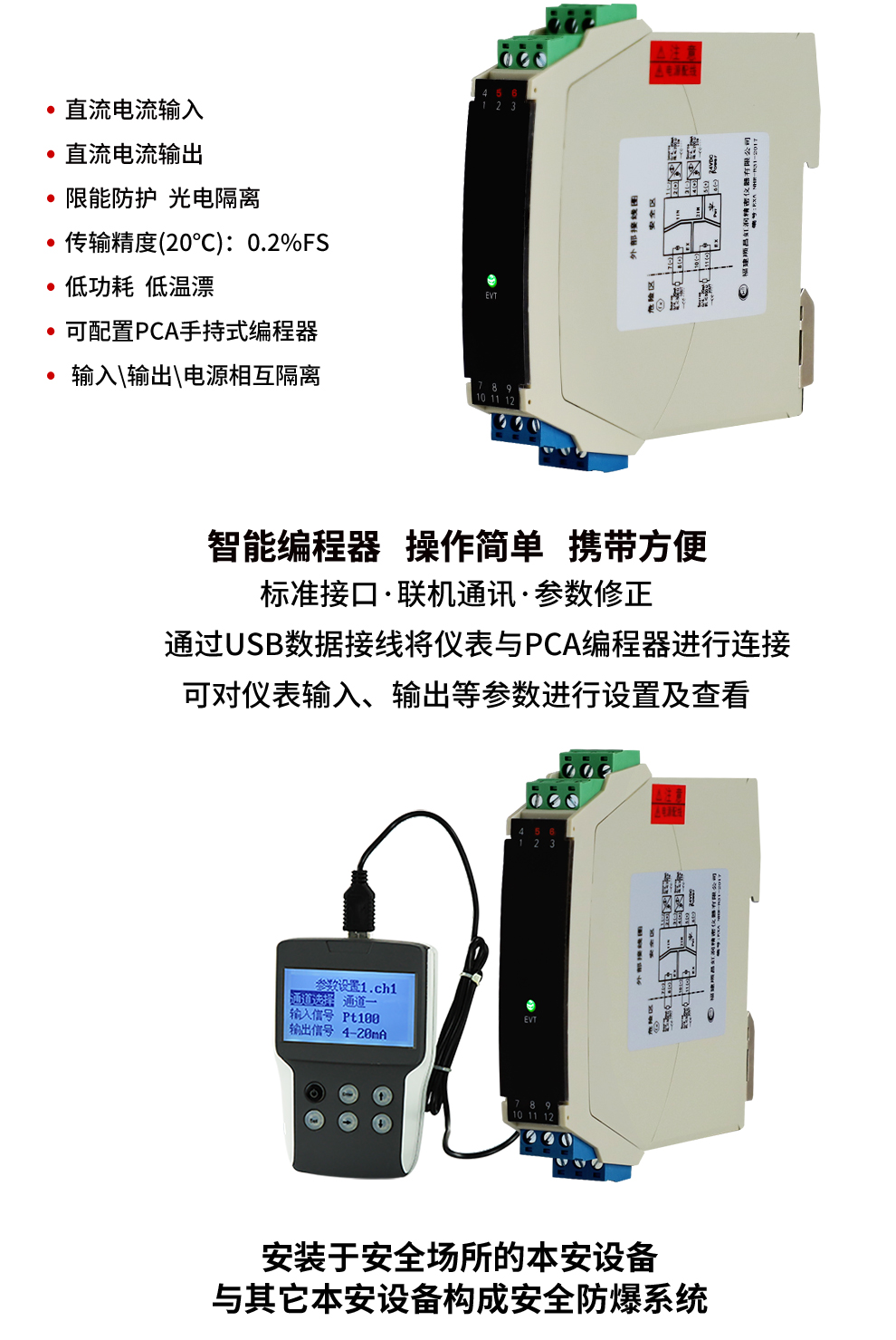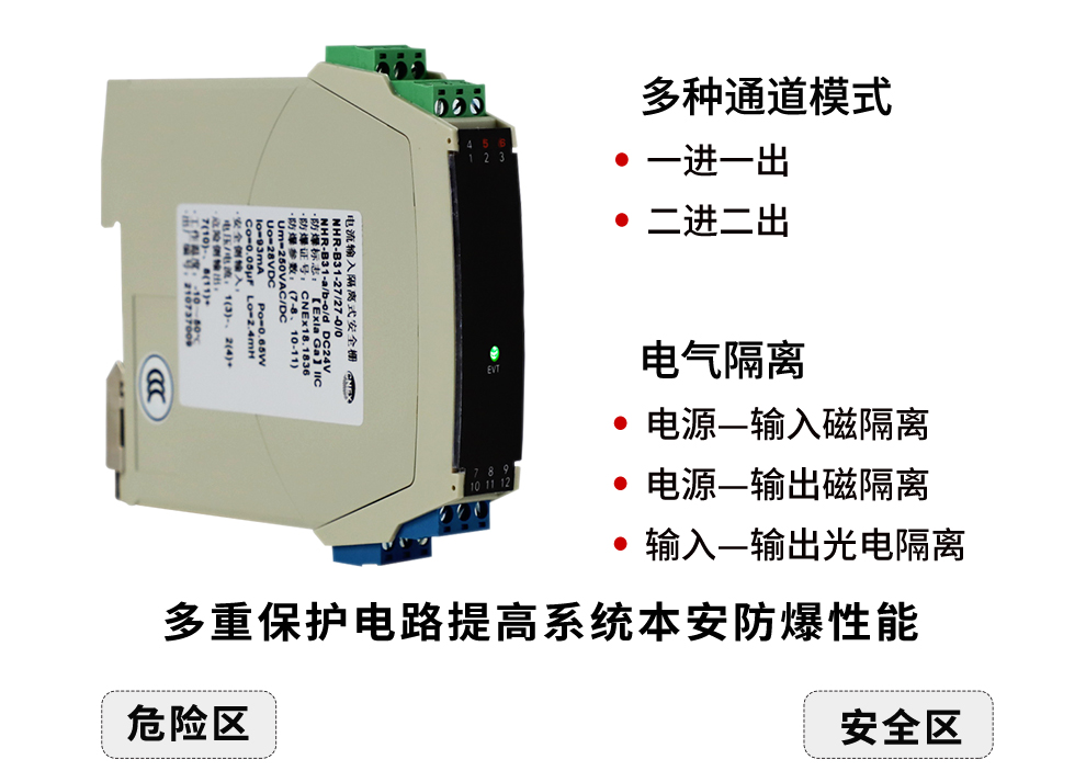 OHR-B31系列电压/电流输出操作端隔离栅将安全区来自DCS或PLC等电气设备的信号经过安全栅(保护)隔离以后再输出线性的直流电压/电流信号,以此来驱动现场的执行机构,该产品需独立供电,输入/输出/电源三隔离。