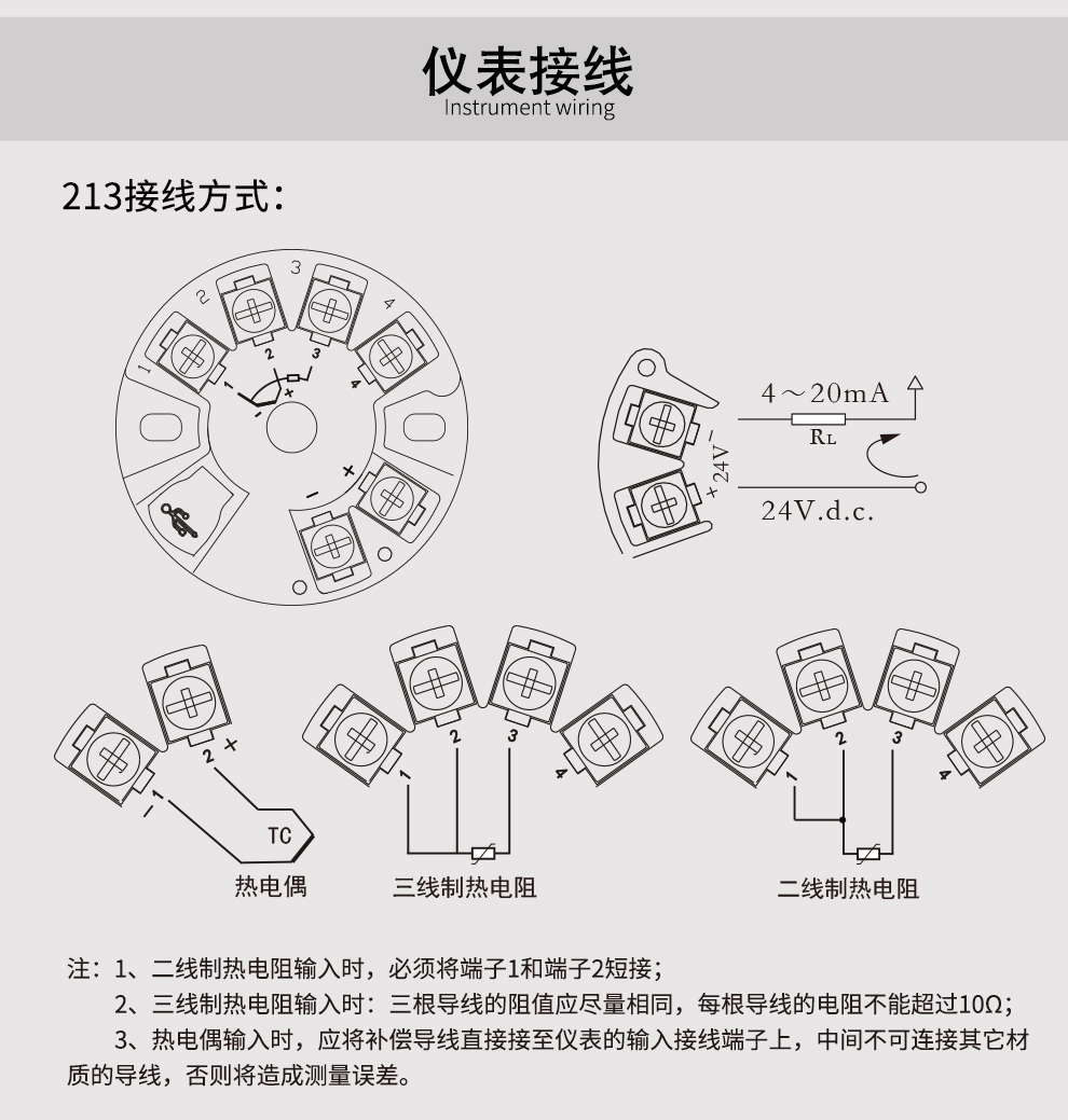 OHR-213智能温度变送器(圆卡),用于热电阻(RTD)、热电偶(TC)信号输入,二线制4~20mA模拟输出,安装于传感器内部(Form B)。