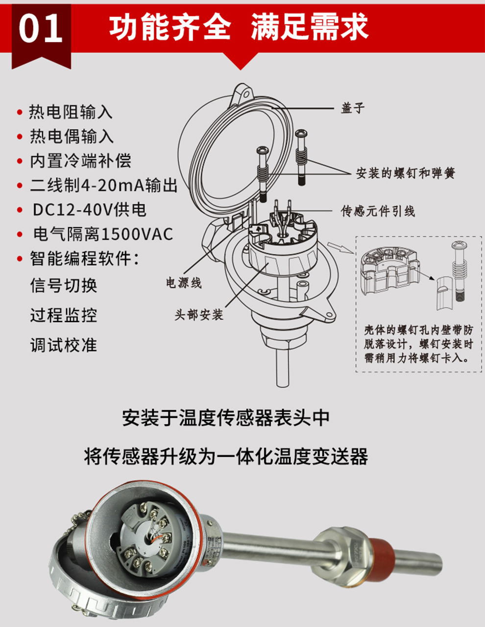 OHR-214隔离智能温度变送器(圆卡),用于热电阻(RTD)、热电偶(TC)信号输入,二线制4~20mA模拟输出,安装于传感器内部(Form B)。
