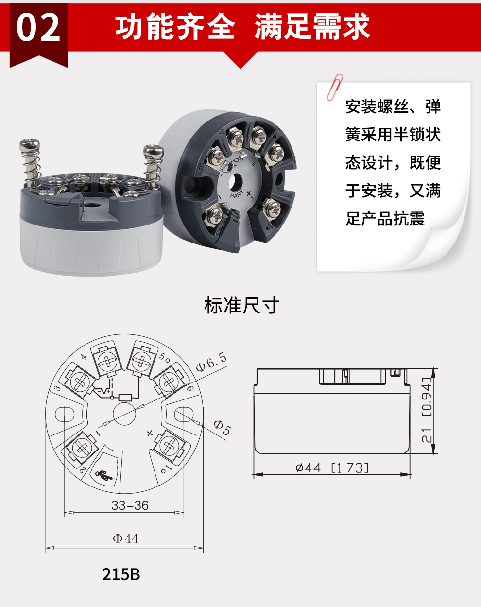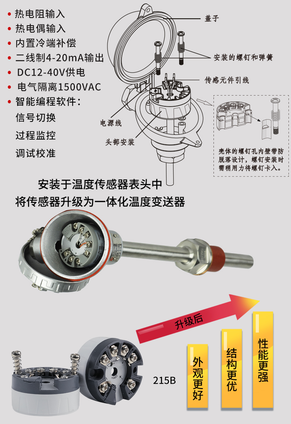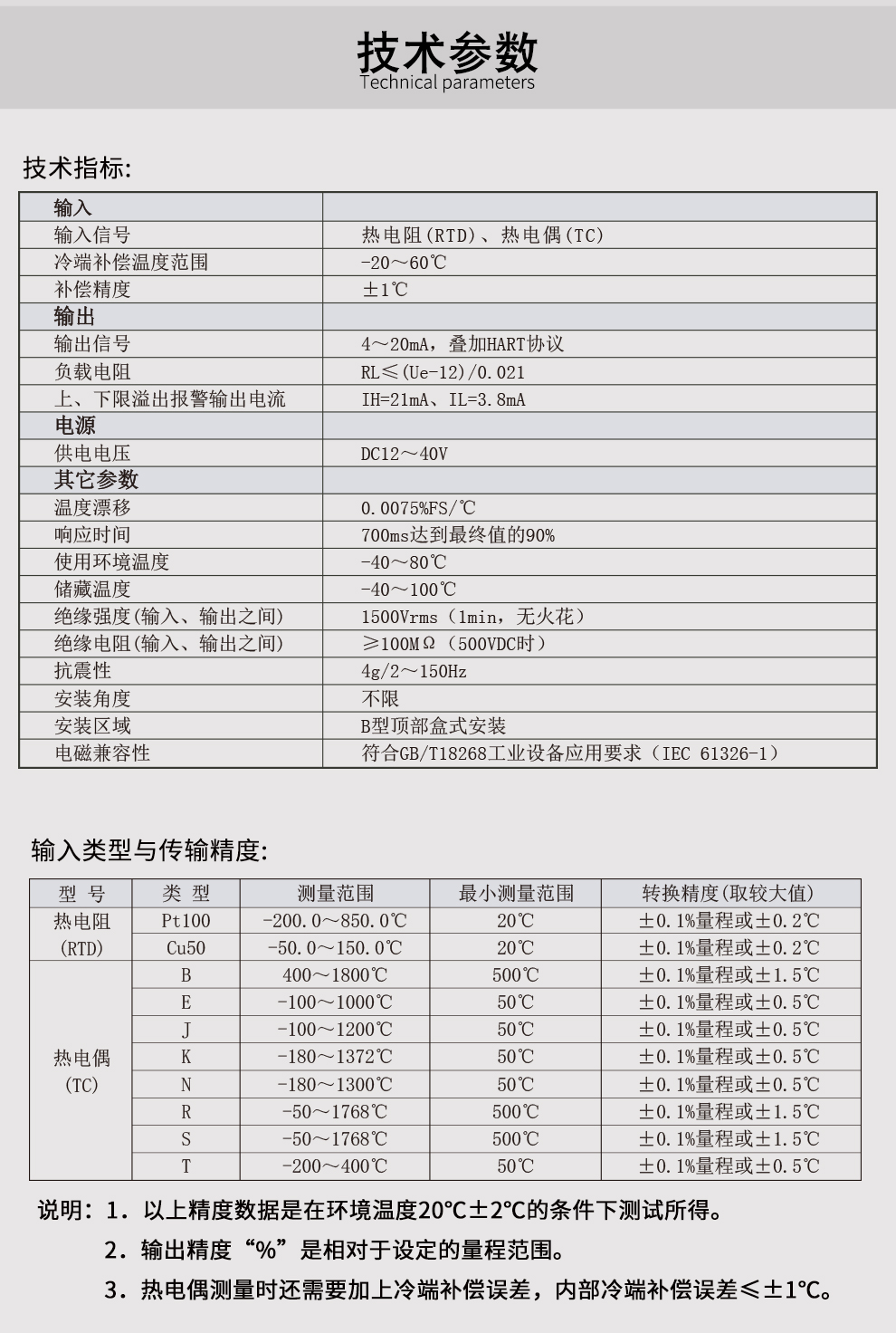 HART智能温度变送器(圆卡),用于热电阻(RTD)、热电偶(TC)信号输入,二线制4~20mA模拟输出,通过HART协议组态,安装于传感器内部(Form B)。