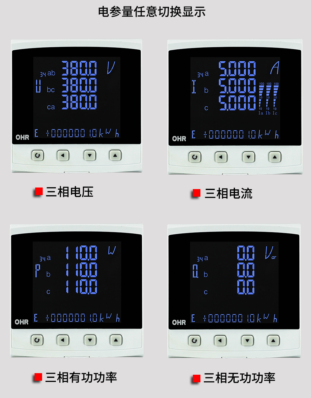 OHR-C500系列液晶综合电量集中显示仪是一款用于中低压系统智能化装置,集数据采集和控制功能于一身,具有电力参数测量及电能计量为一体。它采用大规模集成电路和高亮度长寿命的LED显示器并支持RS485接口MODBUS通讯协议或多种协议。