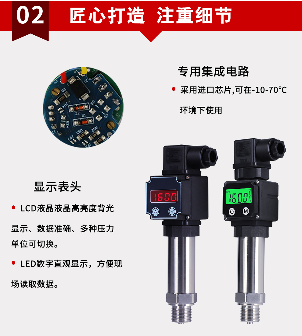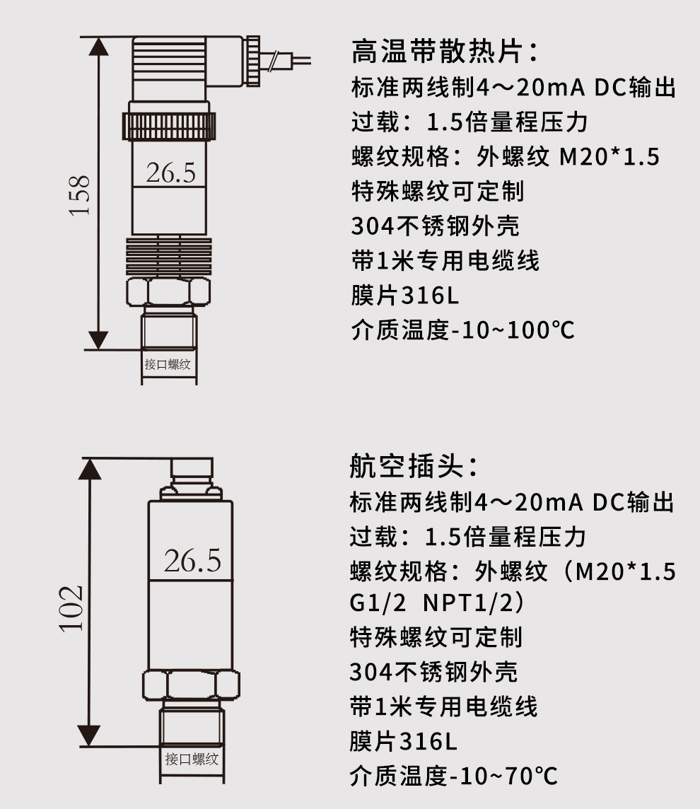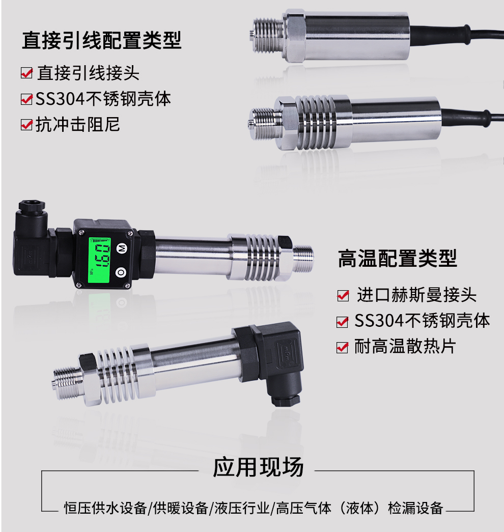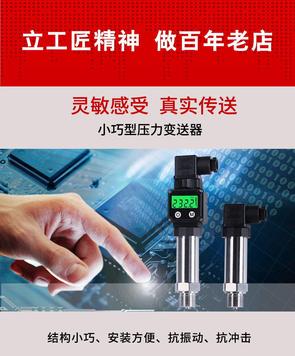 M系列小巧型压力变送器内部使用扩散硅压阻式传感器,其结构简单,体积小巧,易安装;以其优良的可靠性、适用性、灵活性和多样性,广泛的应用于航空、航天、石油、化工、冶金、电力、水利等工业过程现场的压力测量和控制。