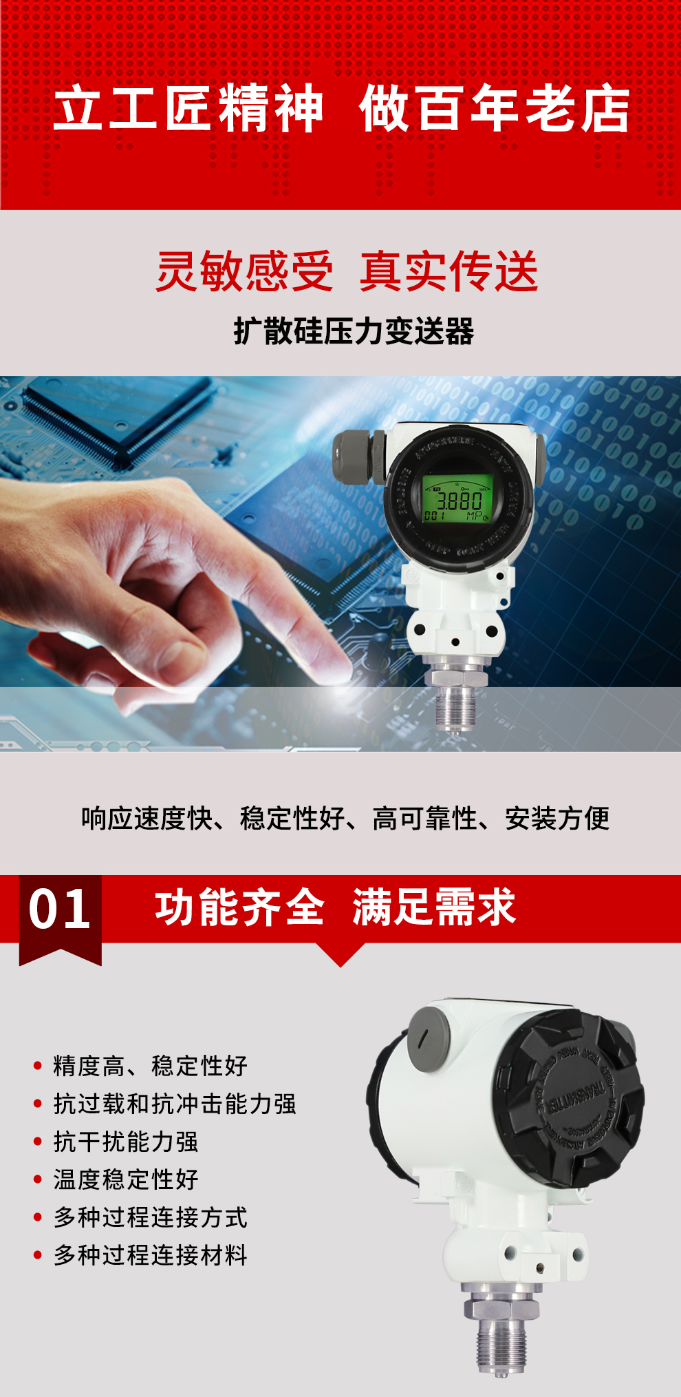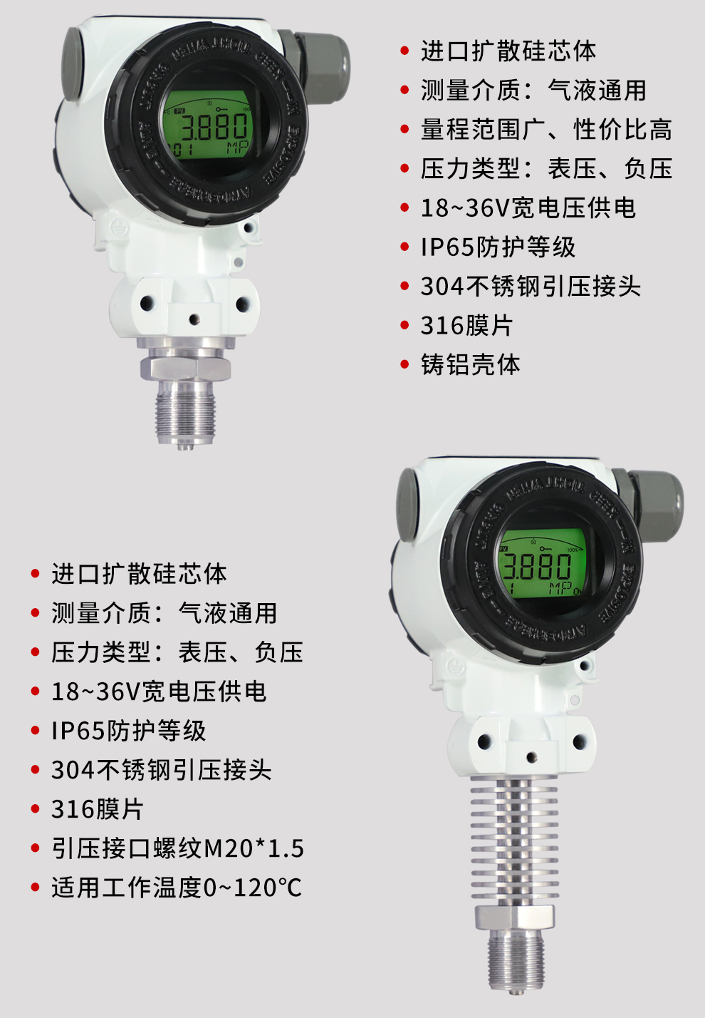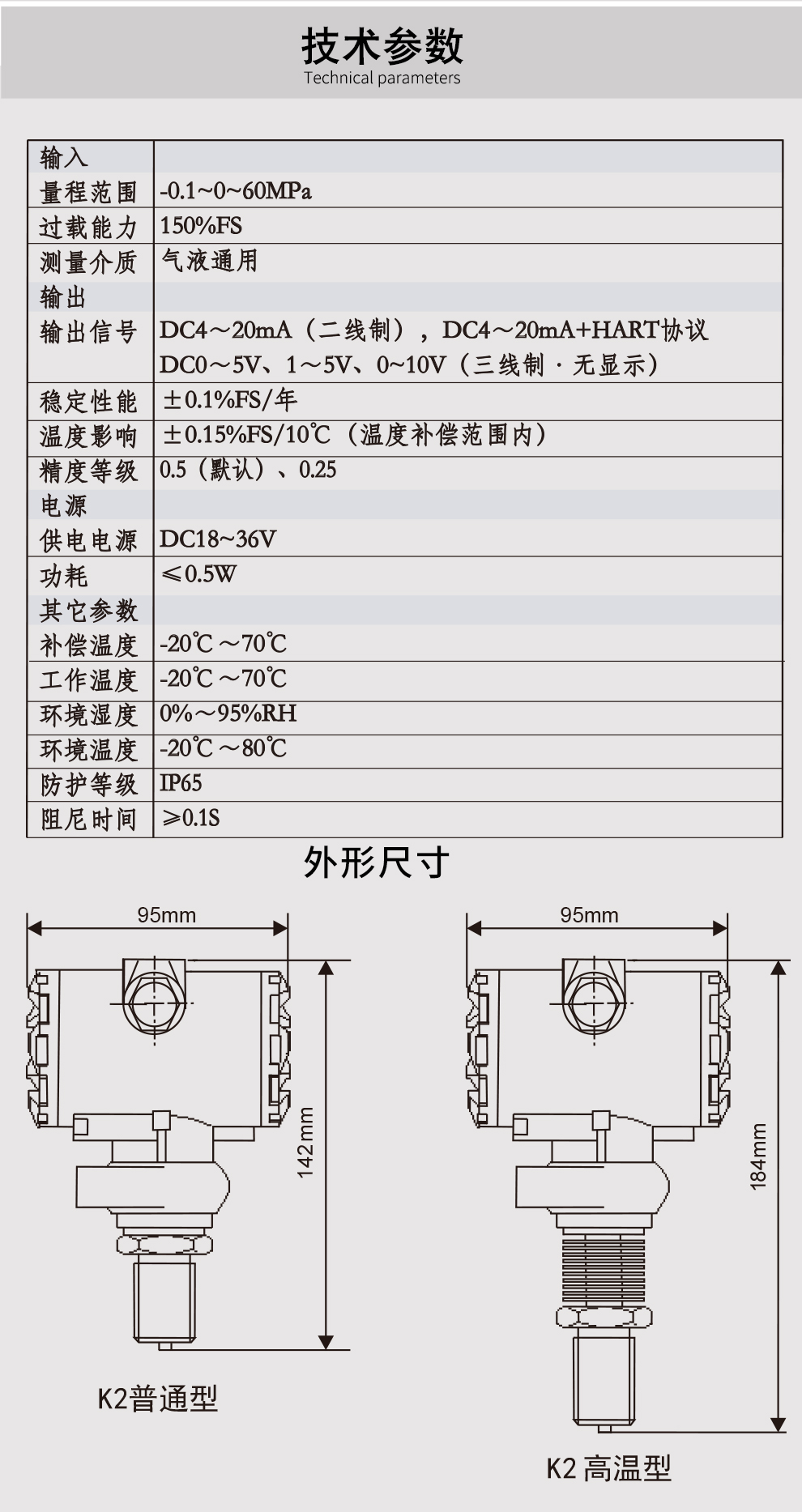 K系列压力变送器采用具有国际先进水平的扩散硅传感器,配合高精度电子元件,经严格的工艺过程装配而成。充分发挥了传感器的技术优势,使该系列压力变送器具有优异的技术性能。该变送器抗过载和抗冲击能力强、温度漂移小、稳定性高,具有很高的测量精度。