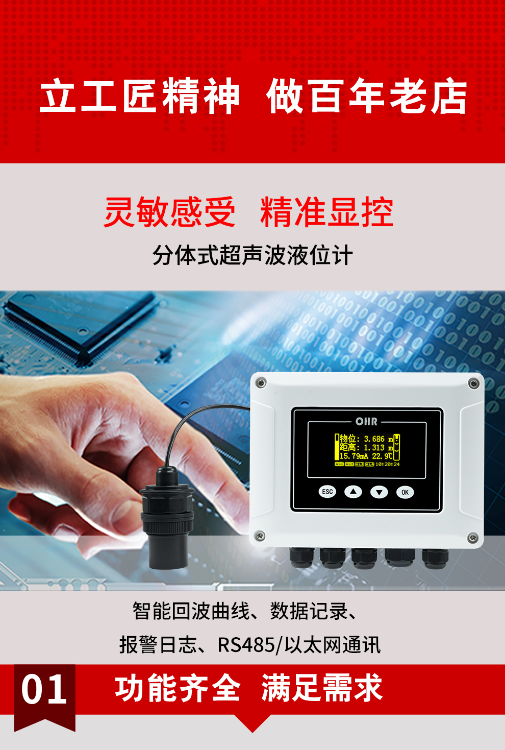 OHR - LC11 系列分体式超声波液位计,是一款功能全面且便捷实用的液位 / 物位测量仪器。它具备数据记录与报警日志功能,安装与维护都极为简便。该液位计采用非接触式测量,无需与介质直接接触,就能精准满足大多数液位 / 物位的测量需求。