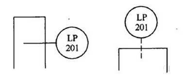 ② 若测量点位于设备中,当有必要标出测量点在过程设备中的位置时,可在引线的起点加一个直径为2mm的小圆符号或加虚线。