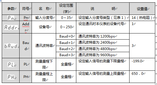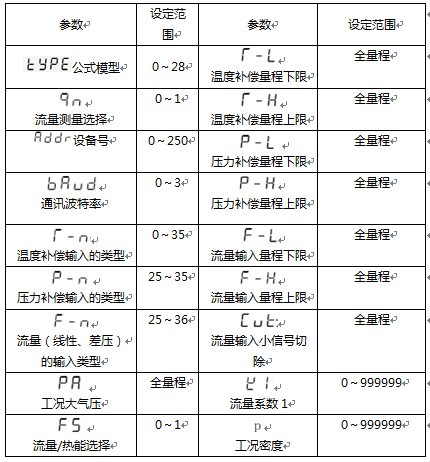 2、仪表参数设定: