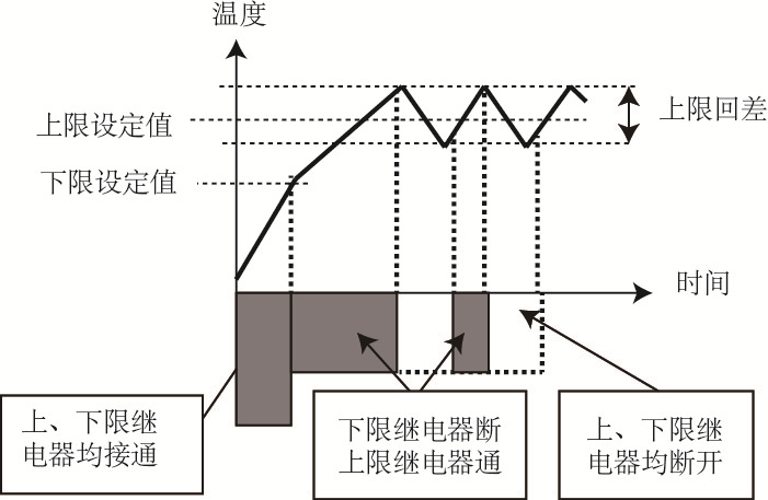 三位式调节还可用于回差可调的宽中间带调节方式,其回差约等于上限设定值与下限设定值之差值,在制冷控制系统中应用较多。