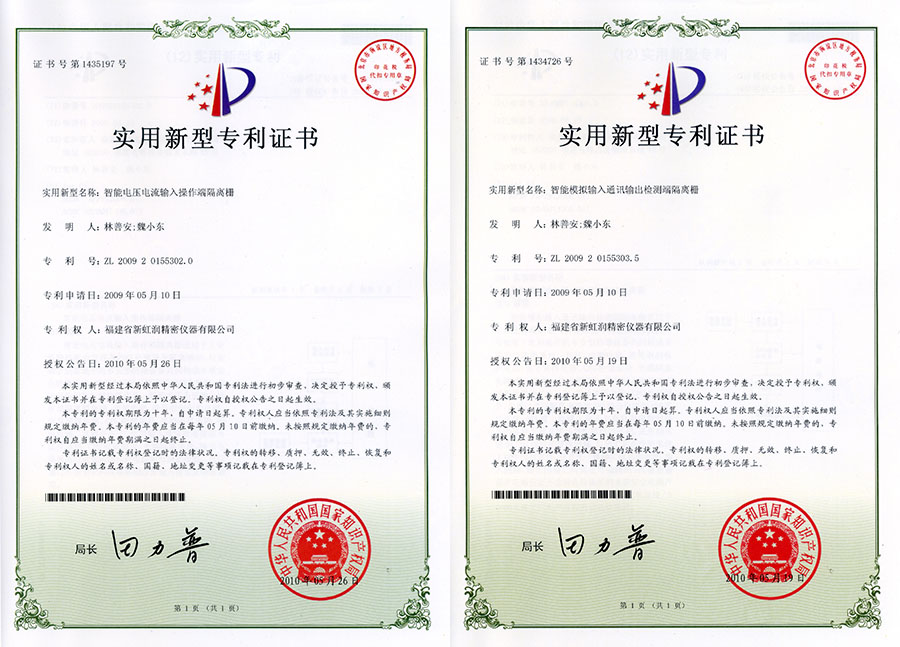 广发(中国)智能安全栅是广发(中国)公司全新一代本安系统防爆仪表。产品荣获智能模拟输入通讯输出检测端隔离栅(专利号 2009201553035)、智能电压电流输入操作端隔离栅(专利号2009201553020)2项实用新型专利,智能隔离式安全栅软件(版权登记号2008SR21216)1项软件著作权,获得国际SIL2功能安全认证证书和国家防爆电气产品质量监督检验中心颁发的防爆电气设备防爆合格证。
