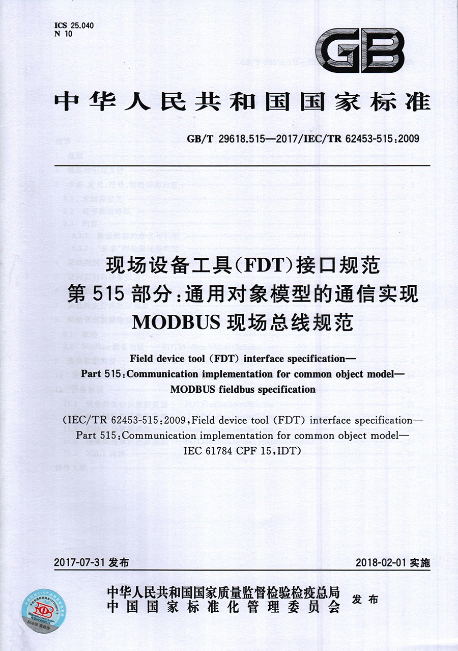 通用对象模型的通信实现 MODBUS现场总线规范 国家标准 |