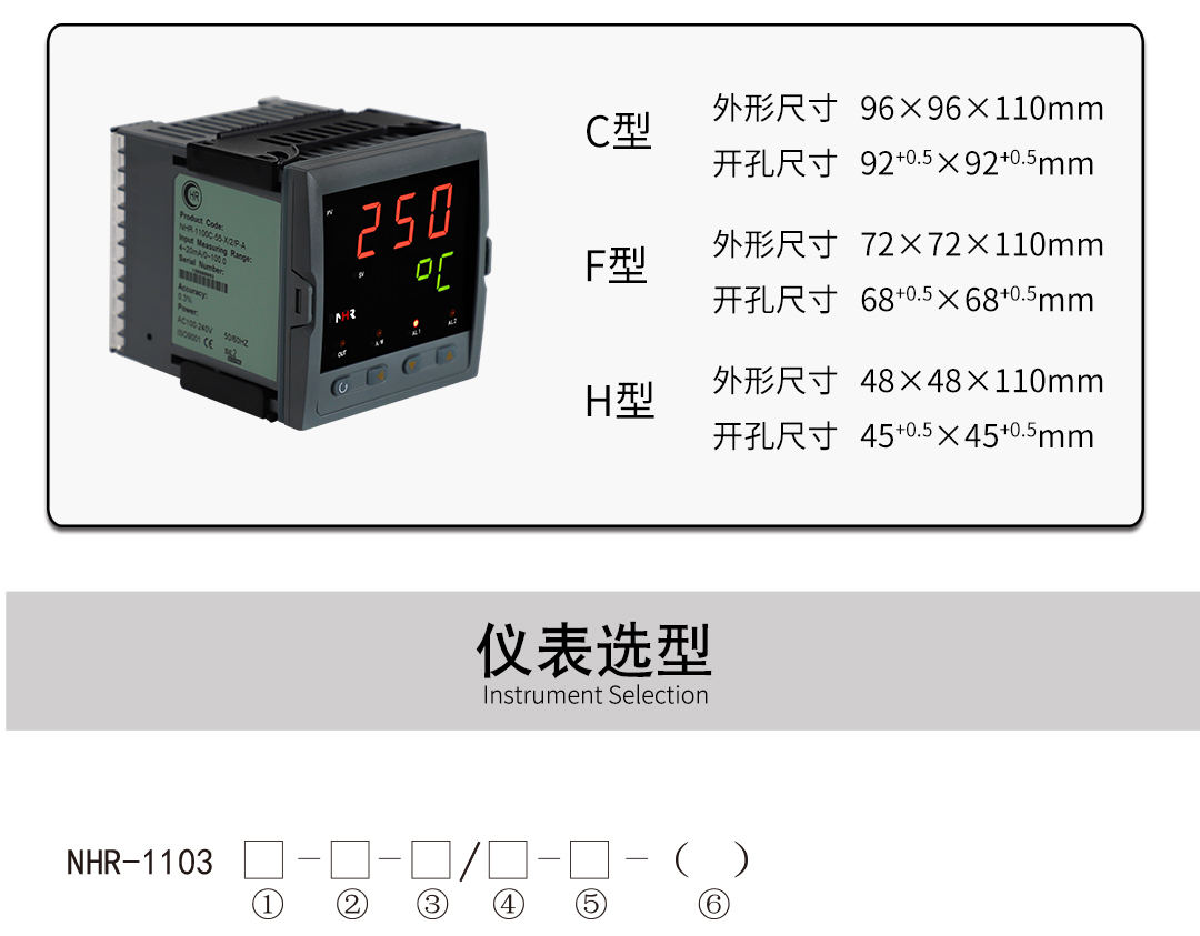 NHR-1103系列经济型三位数字显示控制仪采用模块化结构、操作方便、性价比高,适用于轻工机械、烘箱、实验设备、加热/冷却等控温范围在0~999℃的对象。