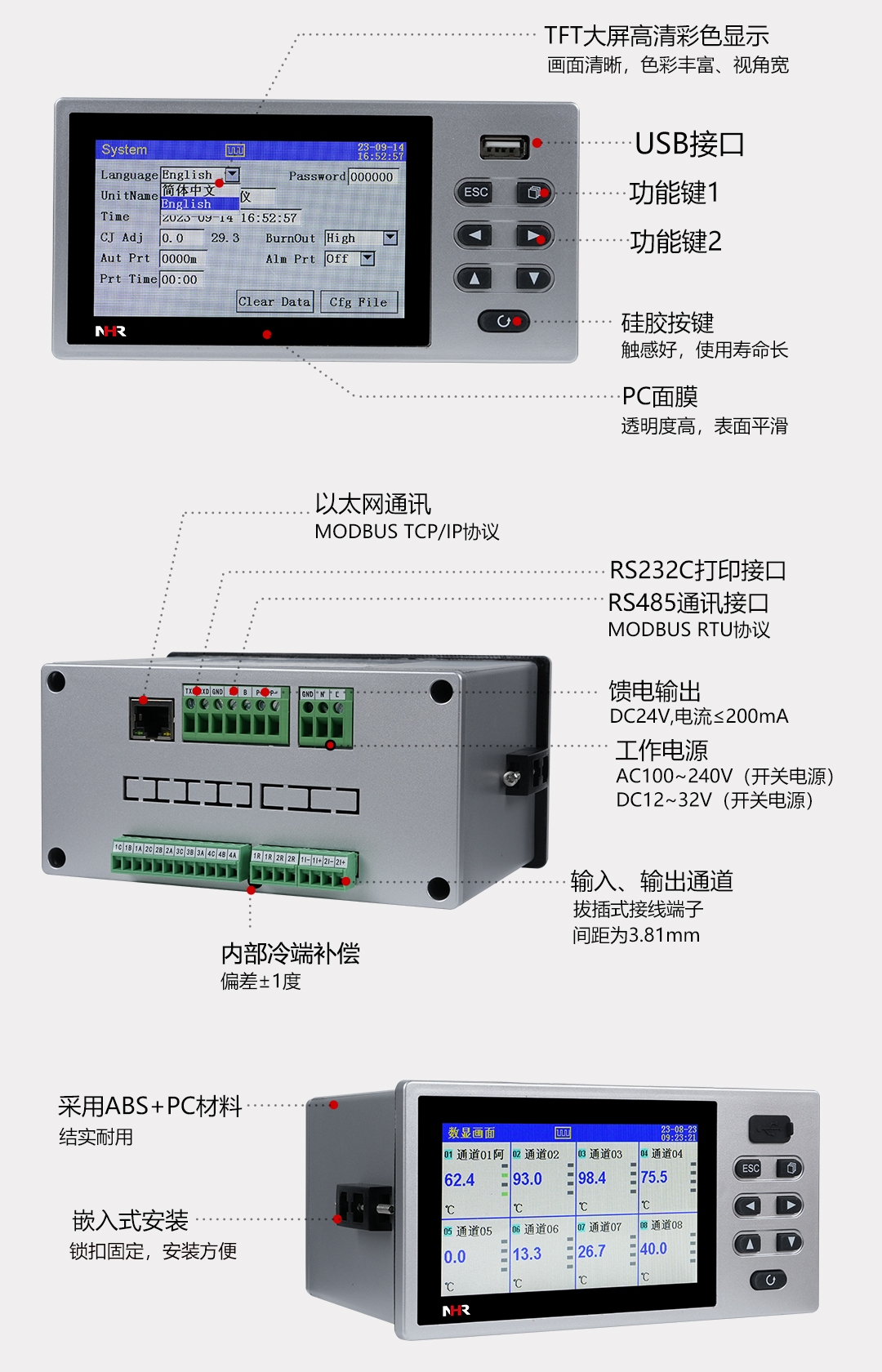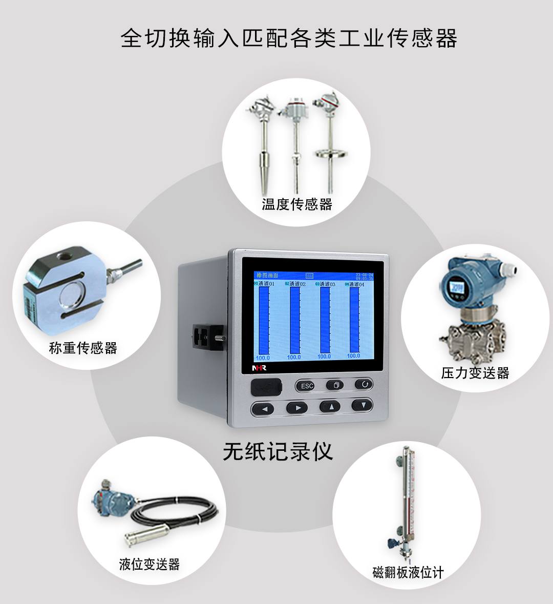 NHR-7100T系列彩色无纸记录仪是一款体积小巧、功能强大的无纸记录仪。采用大屏高清真彩液晶屏为显示 窗口,使产品具有显示清晰、色彩丰富等特点。内核采用高速、高性能32位ARM微处理器,操作简便、响应快 ,记录存储与控制功能强大,是一款功能齐全、操作方便、精确可靠、高性价比的产品,在各行各业中得到广泛 应用。