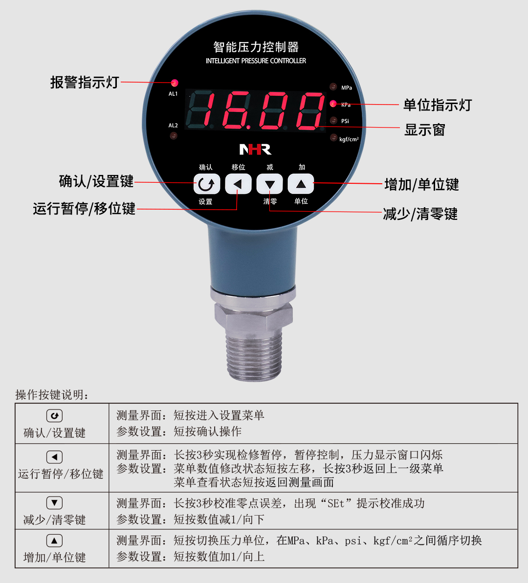 NHR-DP20系列智能压力控制器是集压力测量,显示,输出,控制于一体的智能数显压力测控产品。广泛应用于水电 ,自来水,石油,化工,机械,液压等行业,对流体介质的压力进行现场测量显示和控制。