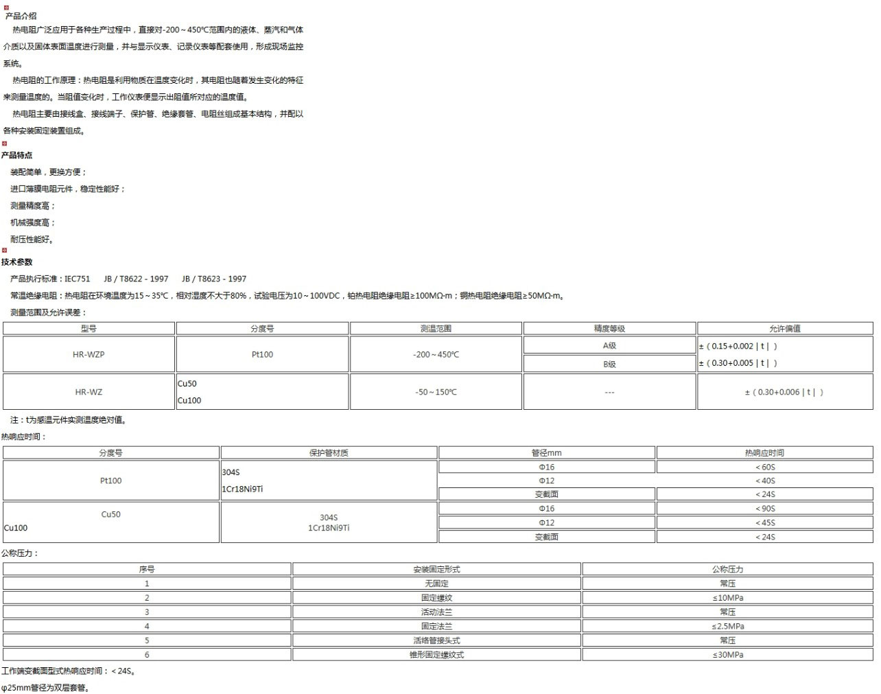 热电阻(thermal resistor)是中低温区最常用的一种温度检测器。热电阻测温是基于金属导体的电阻值随温度的增加而增加这一特性来进行温度测量的。它的主要特点是测量精度高,性能稳定。其中铂热电阻的测量精确度是最高的,它不仅广泛应用于工业测温,而且被制成标准的基准仪。