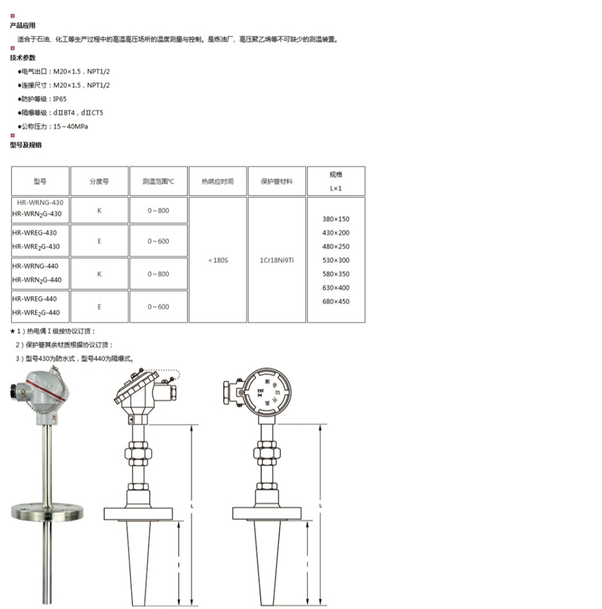 高温高压热电偶适合于石油、化工等生产过程中的高温高压场所的温度测量与控制。是炼油厂、高压聚乙烯等不可缺少的温度装置。