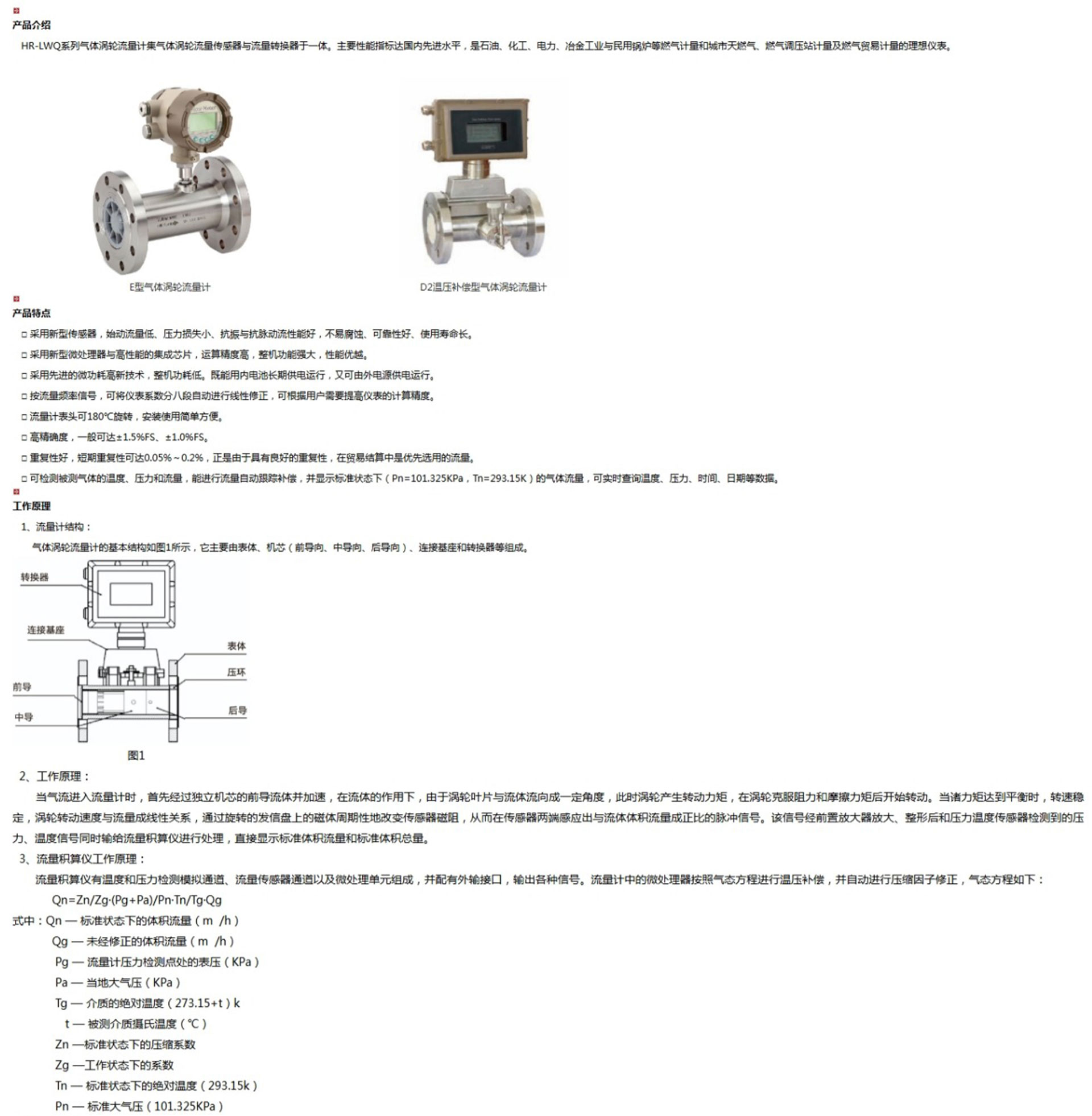 HR-LWQ系列气体涡轮流量计集气体涡轮流量传感器与流量转换器于一体。主要性能指标达国内先进水平,是石油、化工、电力、冶金工业与民用锅炉等燃气计量和城市天燃气、燃气调压站计量及燃气贸易计量的理想仪表。