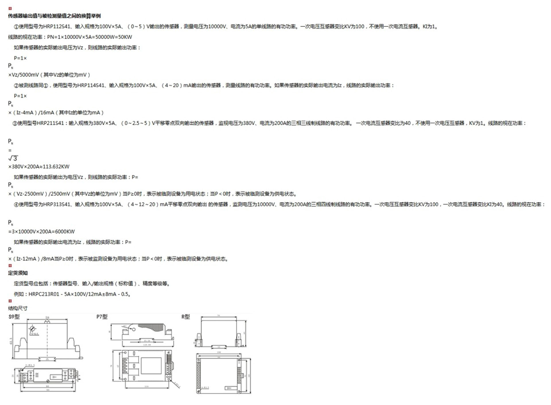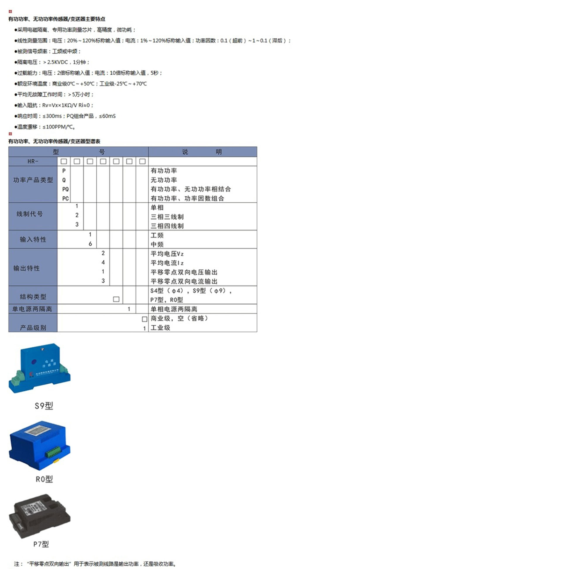 有功功率、无功功率传感器/变送器是一种将电网中的有功功率/无功功率隔离变送成线性的直流模拟信号的装置。该产品采用电磁隔离、专用功率测量芯片,高精度,微功耗。