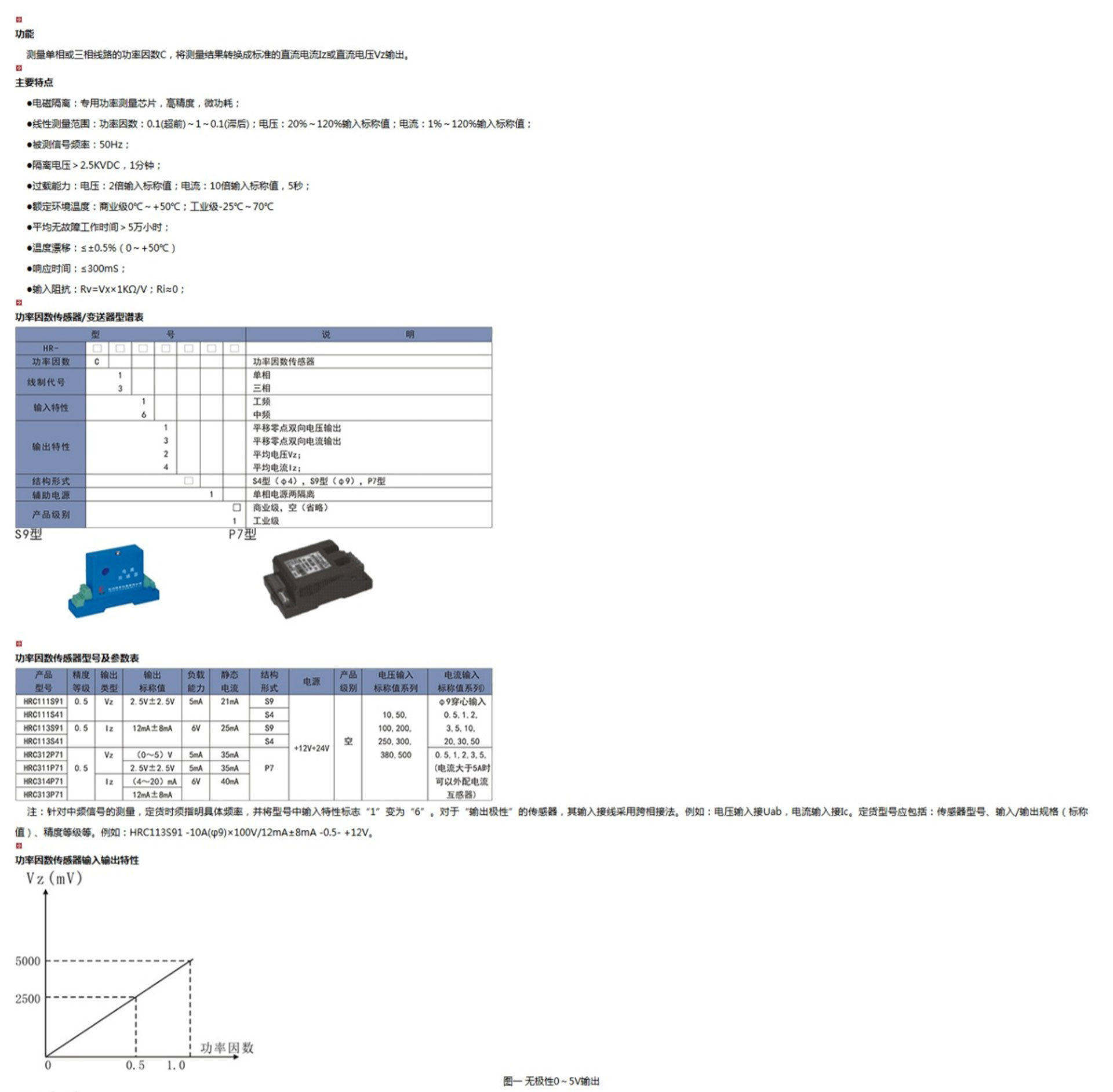 功率因数变送器功率因数变送器可将一负载的交流电流和电压之间的功率因数,转换成按线性比例输出的直流电流或电压。配以相应的指示仪表或装置,可供电力系统或其它工业部门使用。