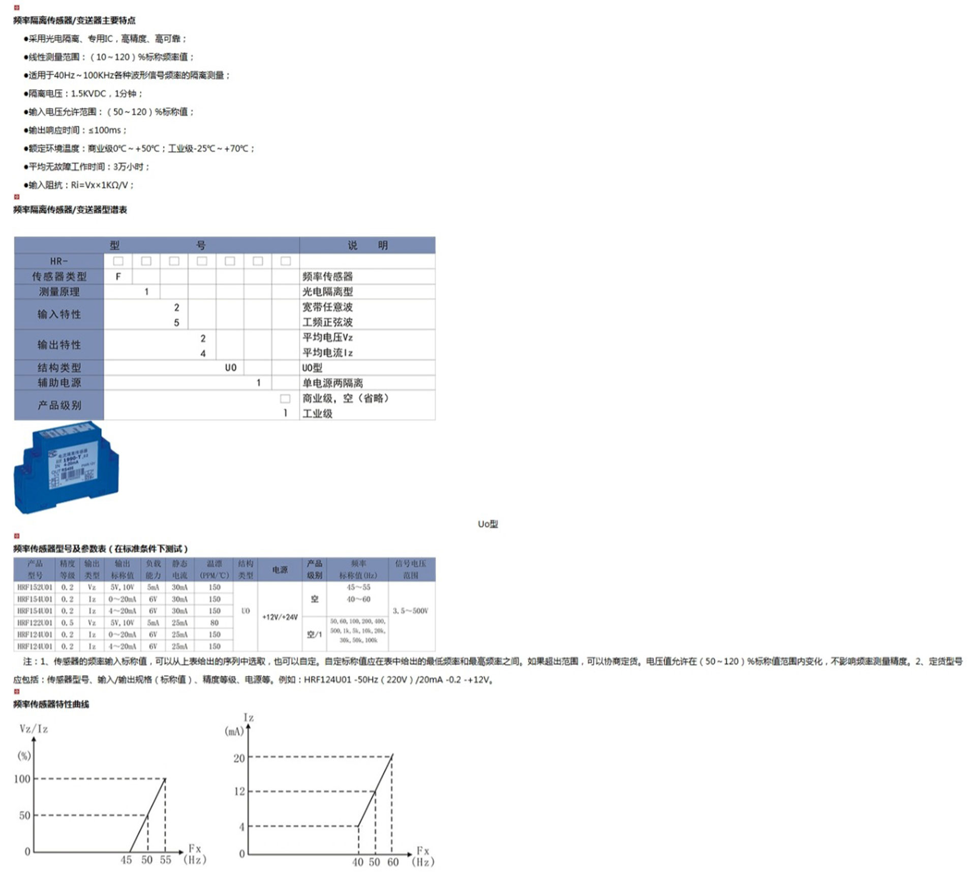 频率隔离传感器/变送器是指被测交流电压频率隔离转换成按线性比例输出的单路标准直流电压或直流电流。