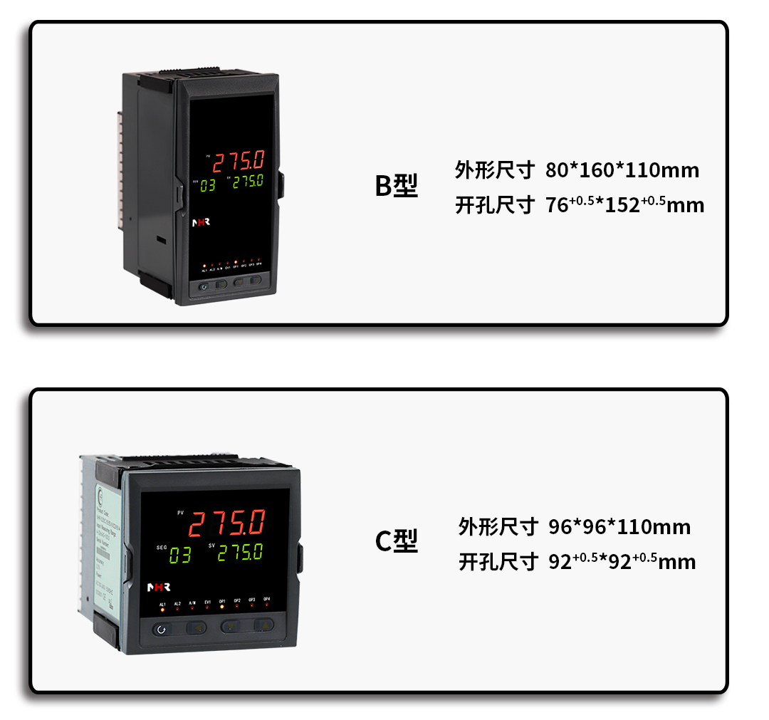 NHR-5400系列60段人工智能温控器采用真正的人工智能算式,仪表启动自整定功能,可以根据被控对象的特性,自动寻找参数以达到很好的控制效果,无需人工整定参数。控温精度基本达±0.1℃,无超调、欠调,达国际先进水平。